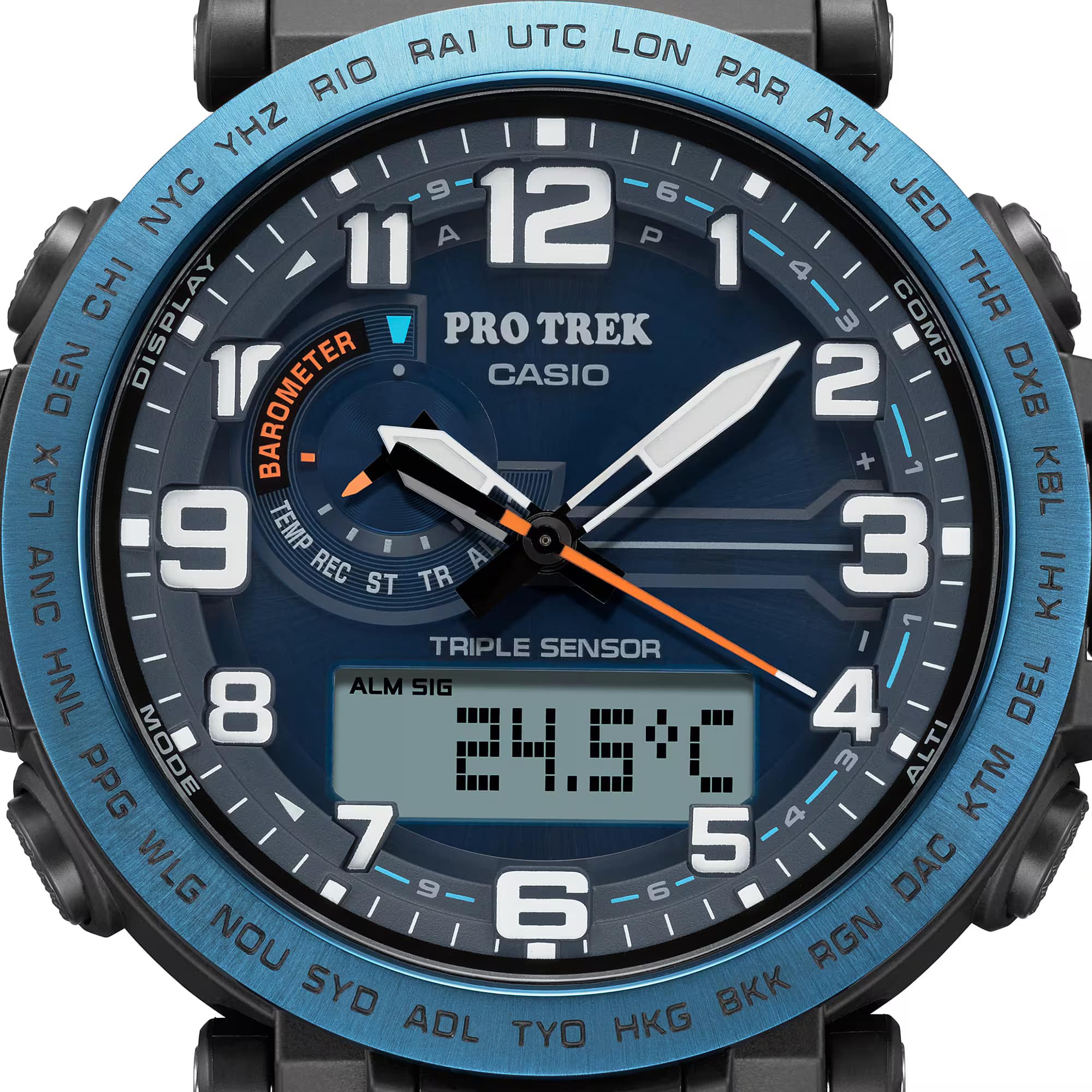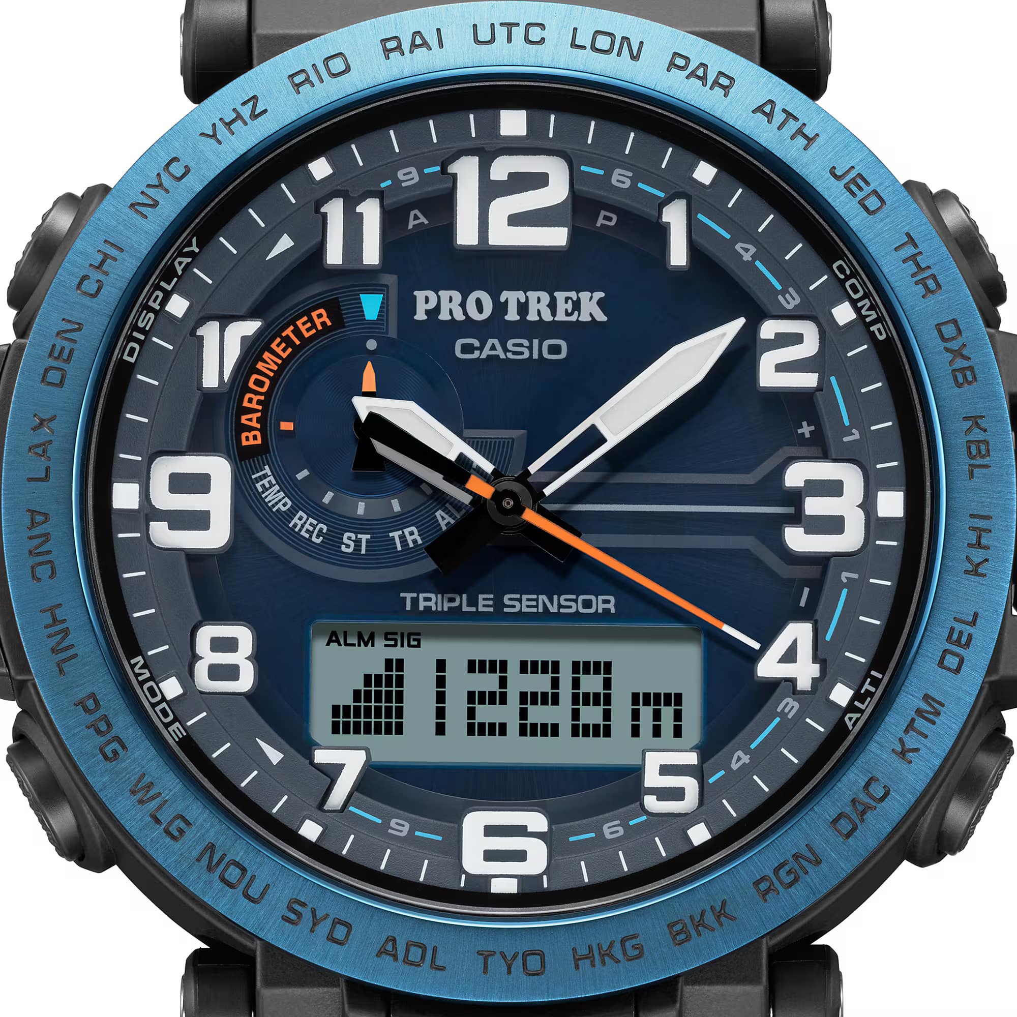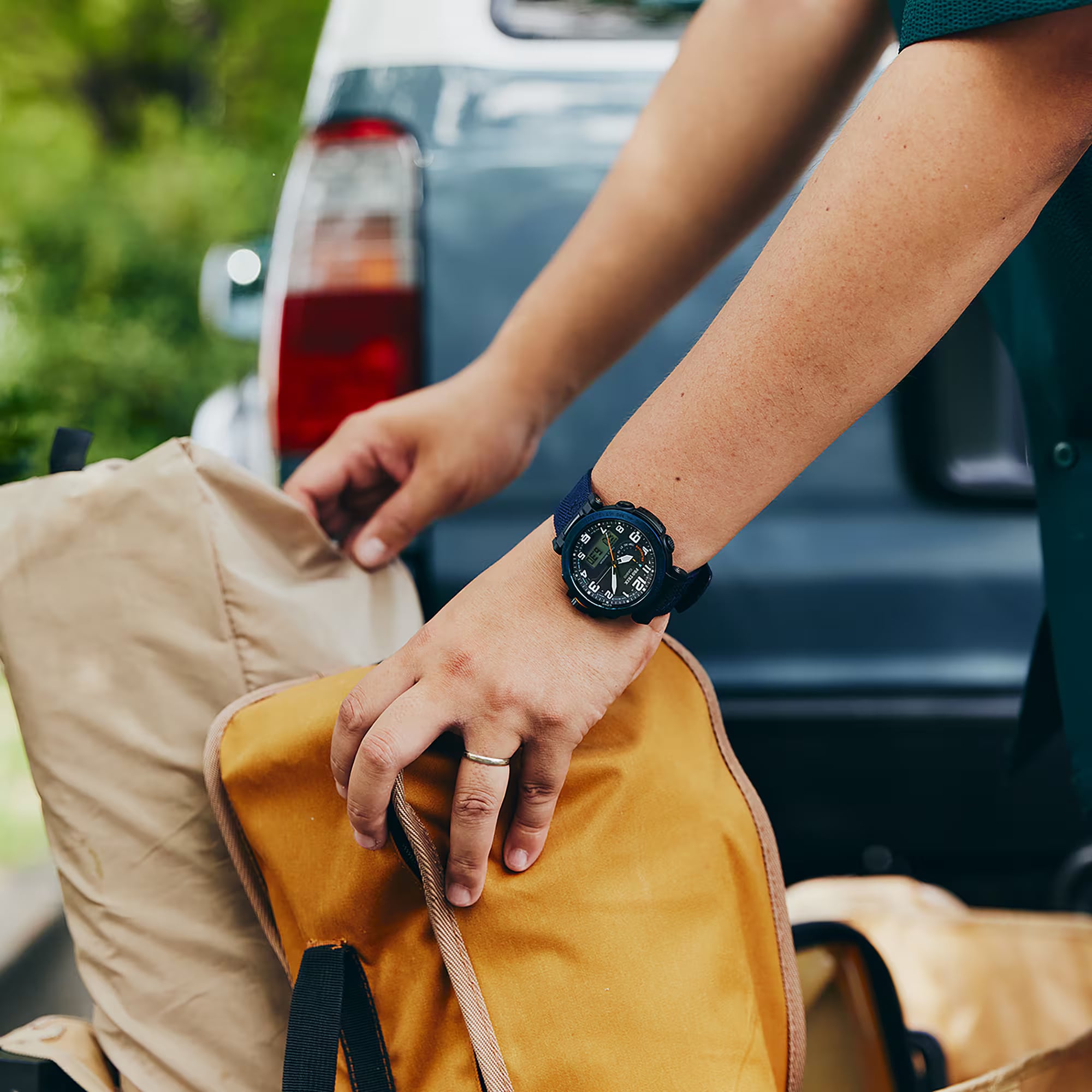 | ویژگی | آلارم, ارتفاع سنج, باطری خورشیدی, بند ساعت از مواد بازیافتی, تقویم, حرکت موقتی عقربه ها برای نمایش کامل صفحه دیجیتال, دما سنج, دو زمانه, شاخص سطح باتری, فشار سنج, قابلیت تحمل دمای پایین, قطب نما, کورنومتر, نمایش ساعت جهانی, نور صفحه |